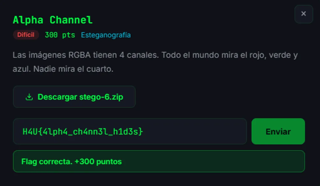 La descripción del reto dice exactamente lo que hay que hacer: ver el alpha de la imagen (la A de RGBA).